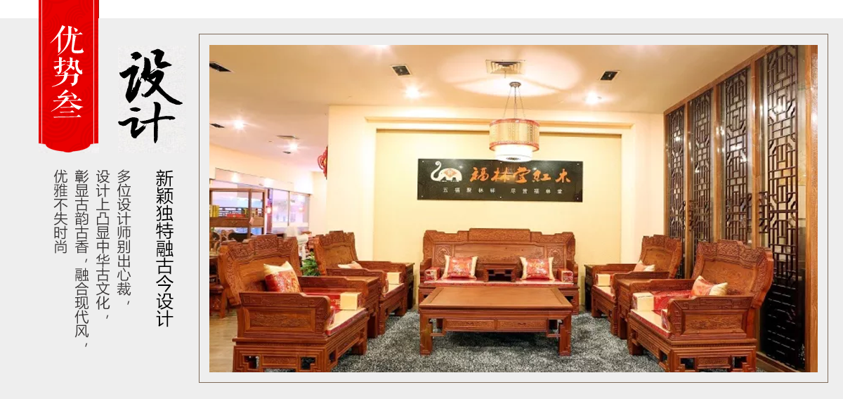 東陽市大聯福林堂紅木家具廠座落于素有“東方好萊塢”之稱的國家AAAAA級影視旅游基地橫店影視城, 是一家集開發、設計、生產、銷售、服務為一體的綜合型企業。本公司匯集一批具有豐富生產經驗的能工巧匠,具有豐富的紅木家具設計生產經驗。本公司產品主要選用紫檀、花梨、酸枝、雞翅等優質紅木,并采用純天然蜂蠟飾面。經過蒸煮、脫脂、烘干、定型等多道工序嚴格處理,福林堂紅木始終嚴格秉承“質量第一”、“信譽至上”的經營理念,在繼承傳統工藝的基礎上,不斷創新,大力引進先進家具設備、烘干設備,實現了現代生產工藝與傳統表現手法的有機相融。